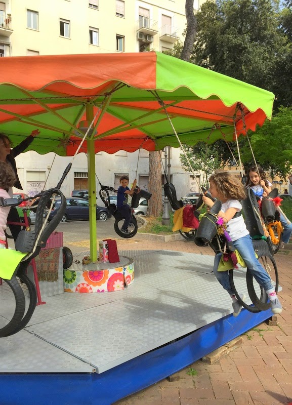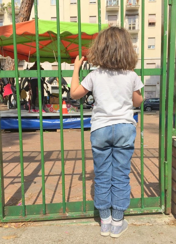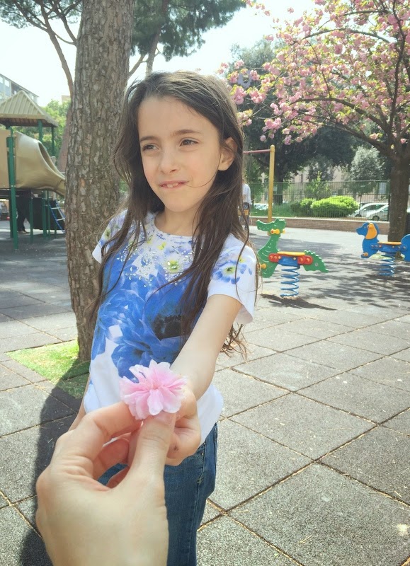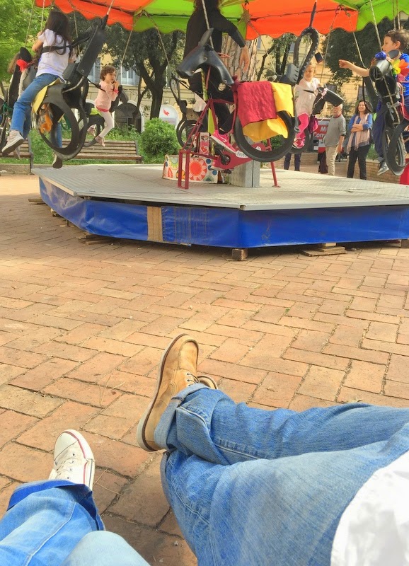 Un pranzo veloce e poi un’ora per noi…un’ora di altalene e scivoli, di giostre e lecca lecche, di alberi in fiore e panchine